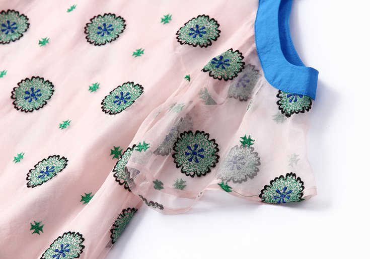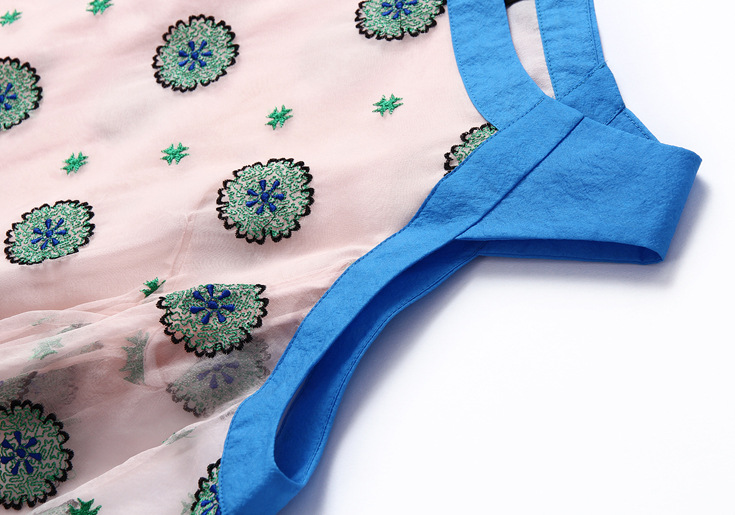2015欧美风春季仙女裙气质新款刺绣网纱连衣裙七分袖大摆裙