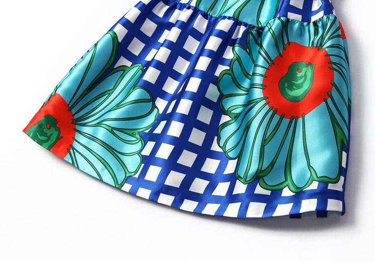 2015春夏新款欧美风印花高档桑蚕丝七分袖A字裙真丝连衣裙