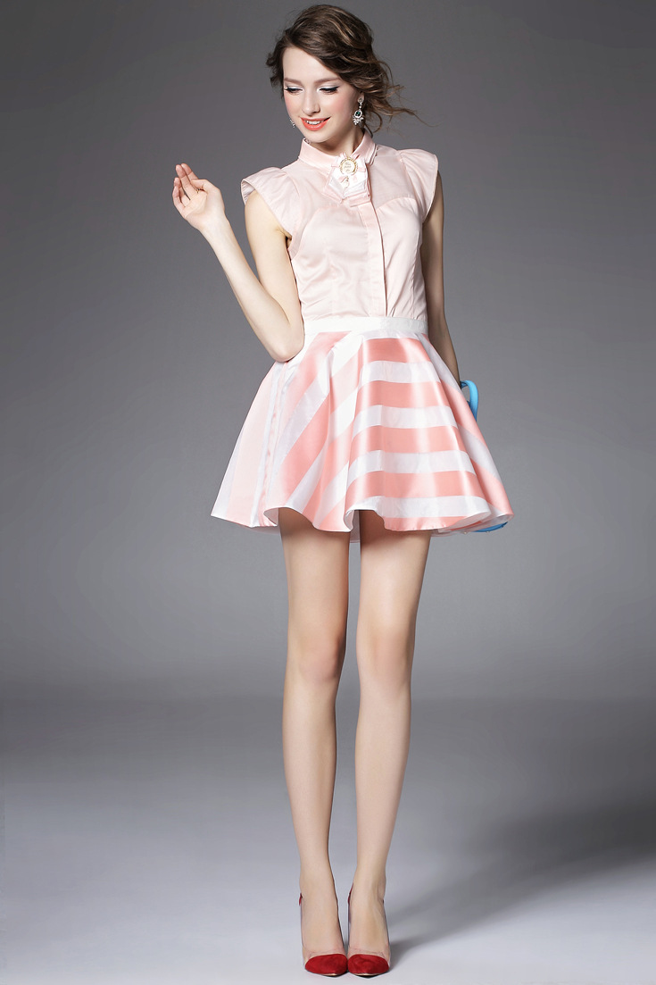 > 2015夏季新款女装 欧美气质条纹a字蓬蓬半身裙品质短裙