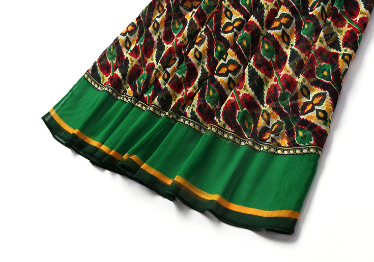 2015春夏新款欧美风印花高档桑蚕丝七分袖A字裙真丝连衣裙