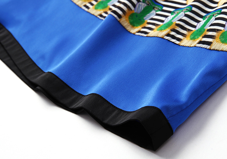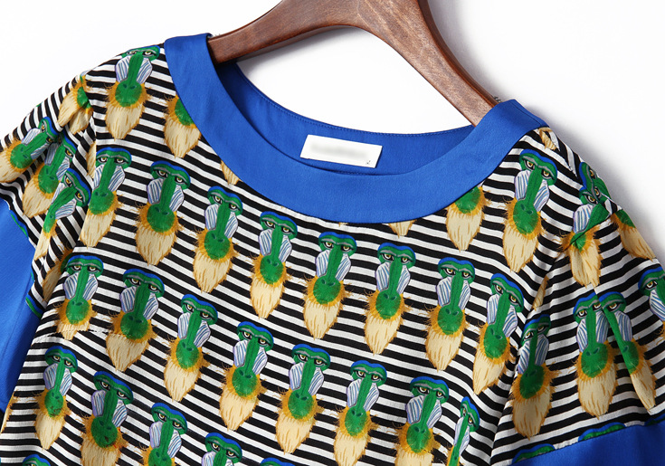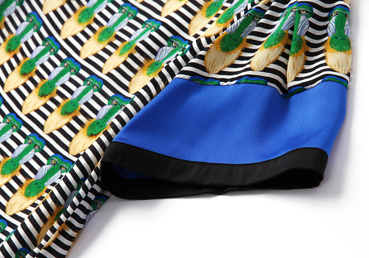 2015春夏季新款欧美风印花真丝连衣裙七分袖衬衣领时尚A字裙