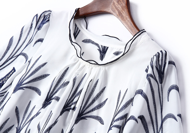 2015新款纯棉打底印花白衬衣女中长款宽松全棉长袖白色衬衫