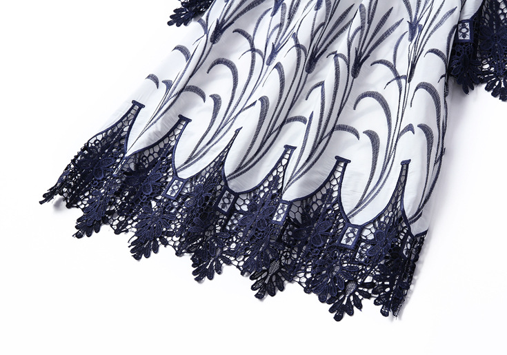 2015夏季女装新款 木耳边领重工水溶绣花镂空拼接波浪边套头女T恤