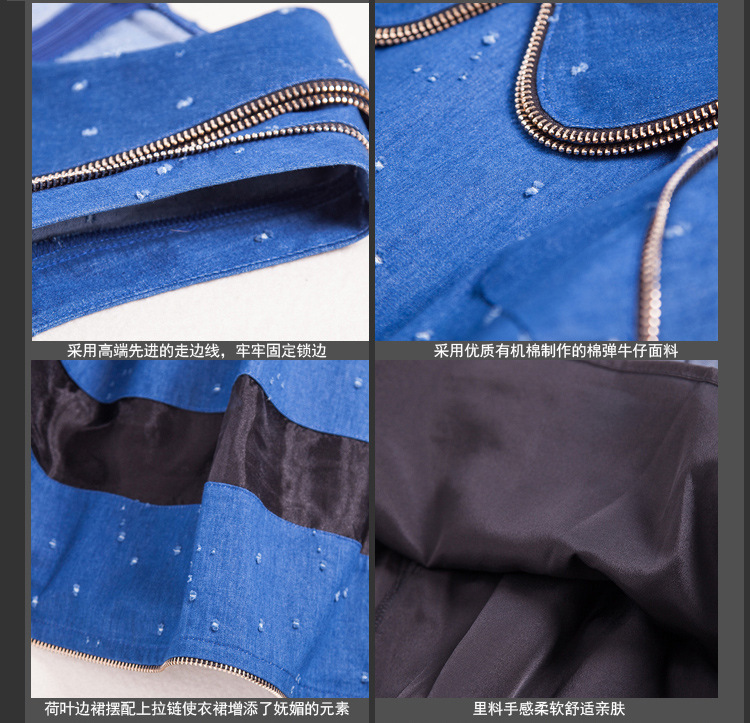 2015春夏新款女装连衣裙无袖V领绣花牛仔连衣裙百褶裙