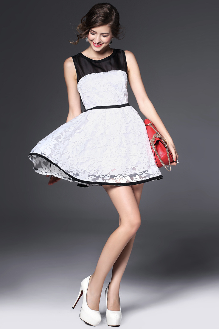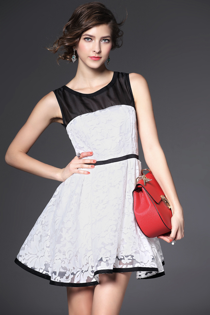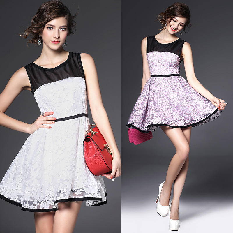2015欧美风春装新款女装连衣裙显瘦气质镂空修身A字裙