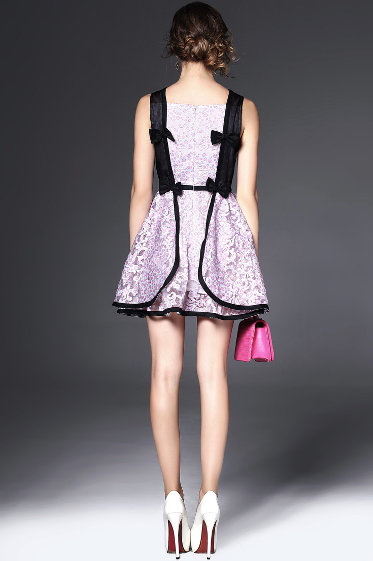 2015夏季女装新款 欧美高端绣花立体印花后背蝴蝶结拼接修身a字裙