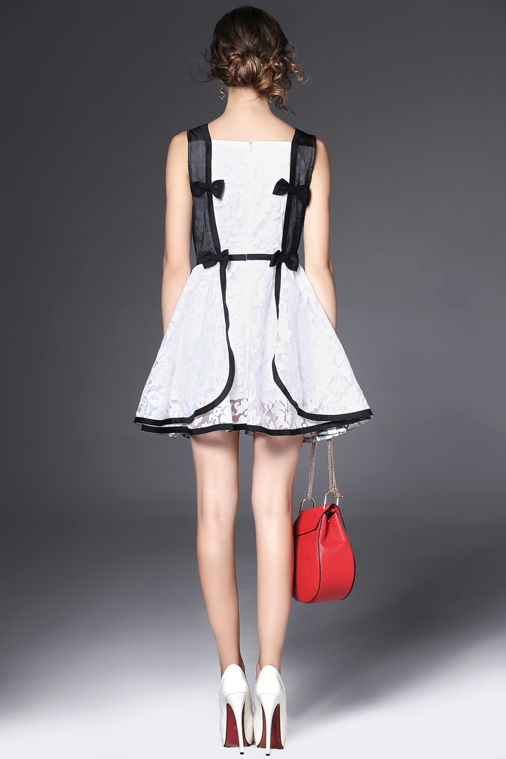 > 2015夏季女装新款 欧美高端绣花立体印花后背蝴蝶结拼接修身a字裙