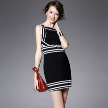 > 2015夏季新款时尚圆领无袖弹力针织修身一步短裙显瘦连衣裙