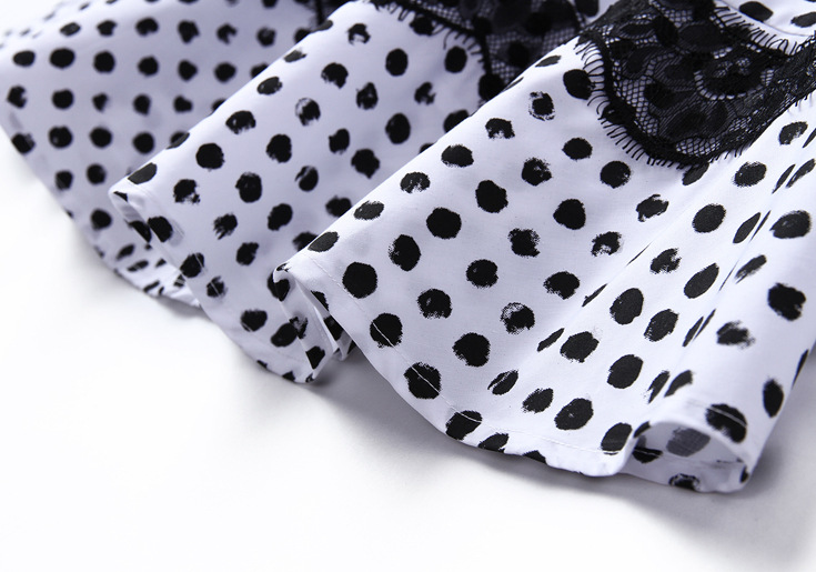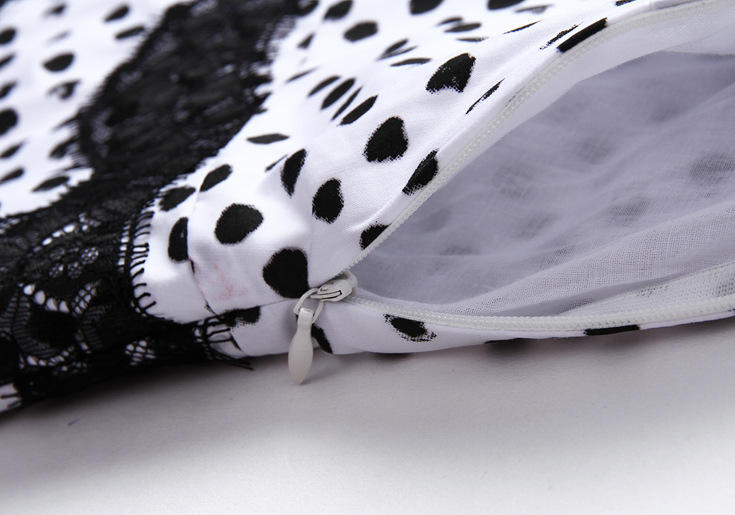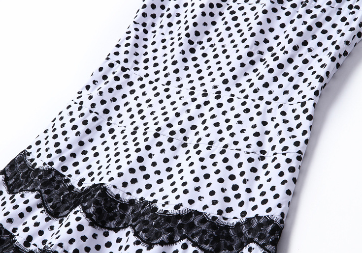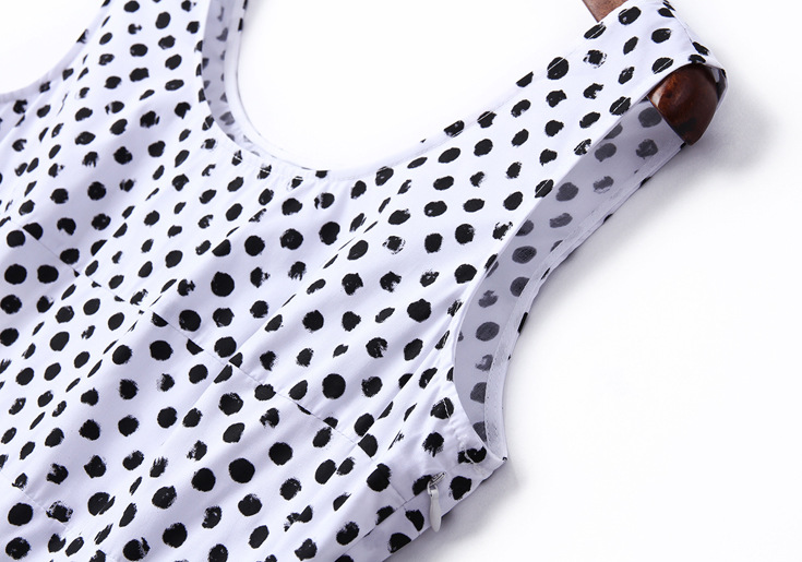 2015夏季欧美女装无袖圆领波点印花蕾丝拼接收腰修身A字裙