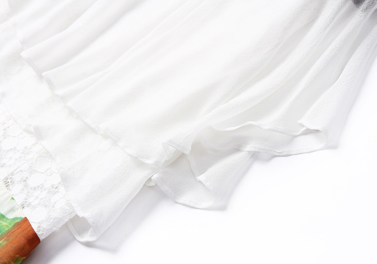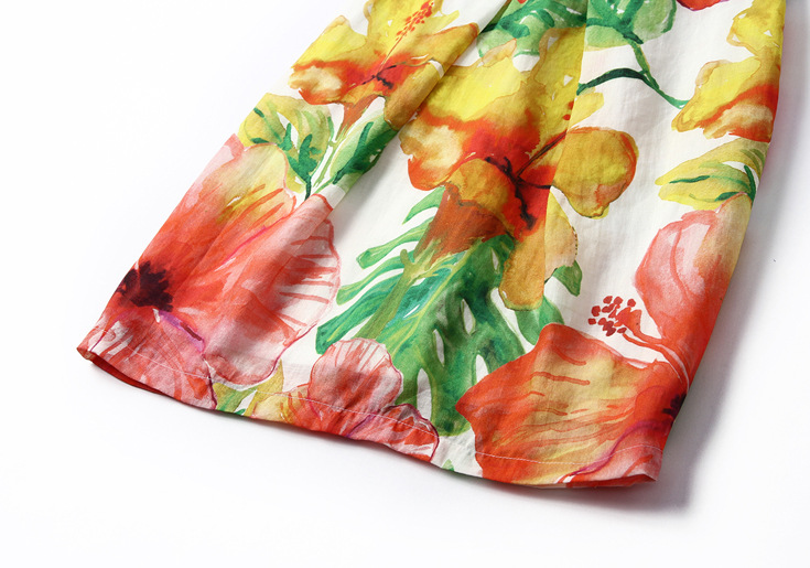 2015春夏新款欧美风印花高档桑蚕丝七分袖A字裙真丝连衣裙