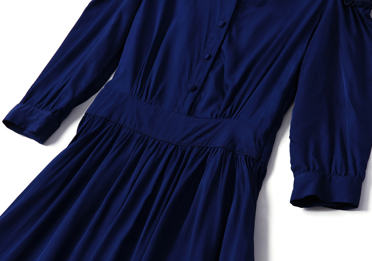 2015春夏季新款欧美风印花真丝连衣裙七分袖衬衣领时尚A字裙
