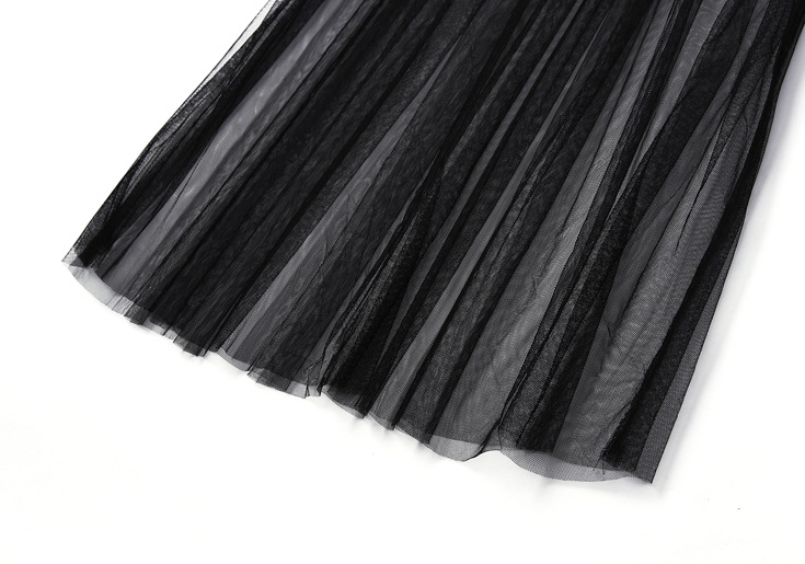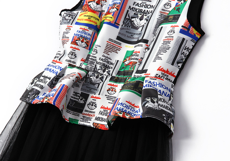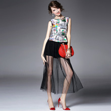 > 2015夏季女装新款 圆领无袖荷叶边网纱拼接收腰修身长裙