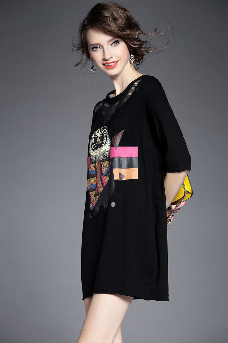 2015春夏新款欧美风印花高档桑蚕丝七分袖A字裙真丝连衣裙