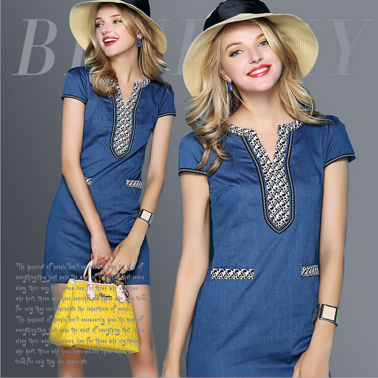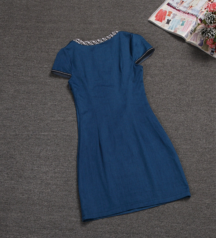 > 2015早春新款弹力水洗牛仔气质优雅打底裙连衣裙女