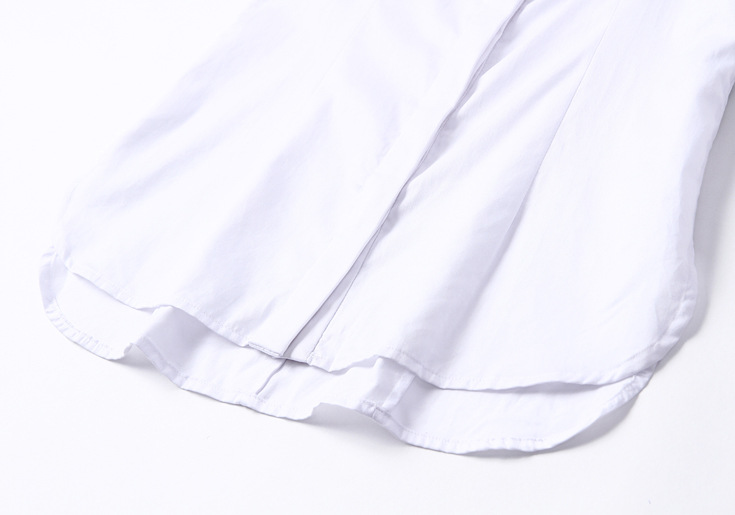 2015新款纯棉打底印花白衬衣女中长款宽松全棉长袖白色衬衫