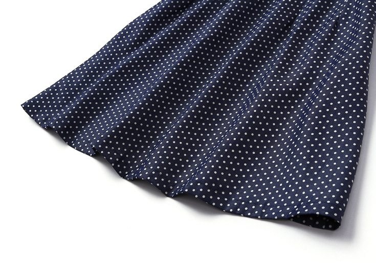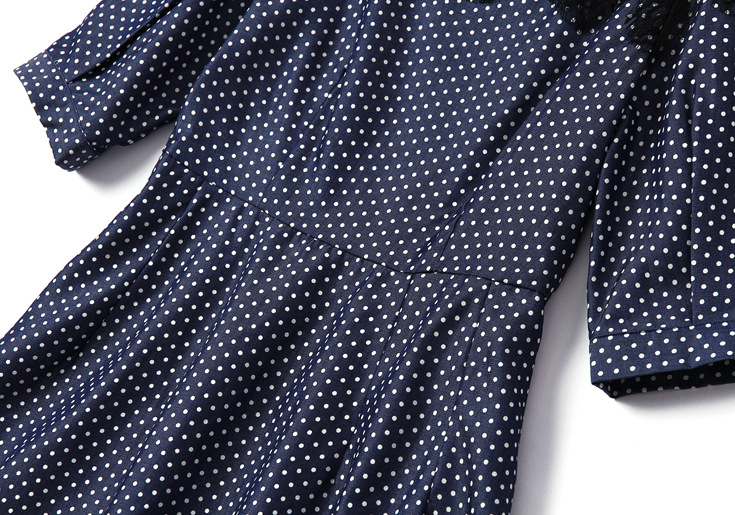2015夏季新款 圆领蕾丝拼接中袖波点印花修身a字裙