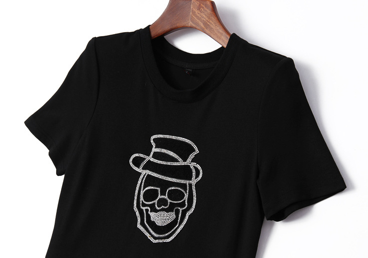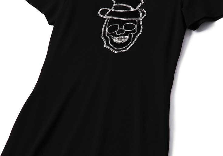 2015夏季新款欧美大牌钉钻骷髅头后背字母印花修身包臀中长连衣裙