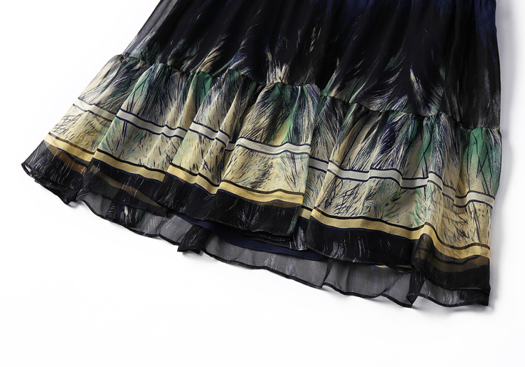 2015春夏新款欧美风印花高档桑蚕丝七分袖A字裙真丝连衣裙