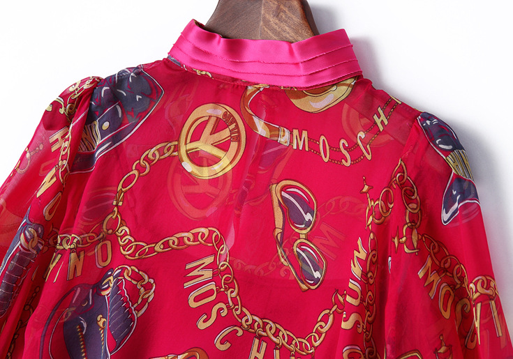 2015春装新款欧美风修身桃心印花真丝衬衣女式长袖衬衫
