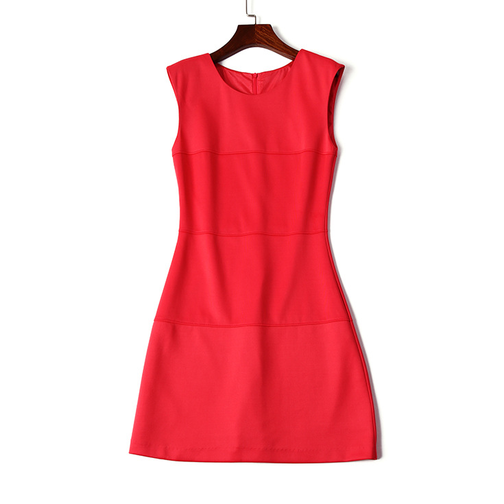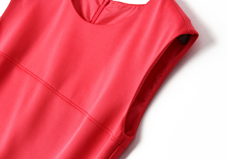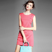 > 2015夏季女装新款简约时尚圆领无袖纯色修身包臀一步裙显瘦
