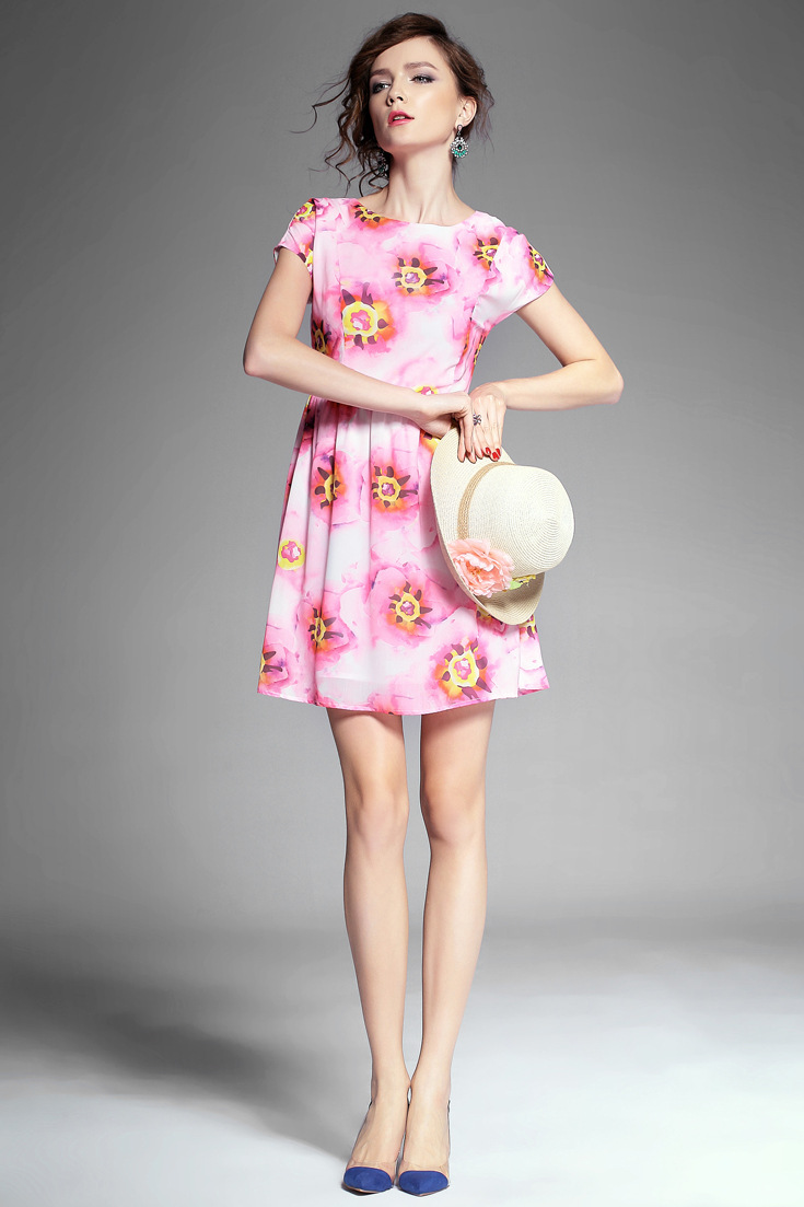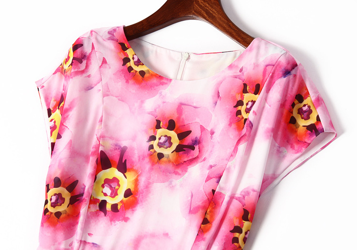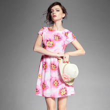 > 2015夏季新款 圆领印花收腰修身a字裙品质连衣裙
