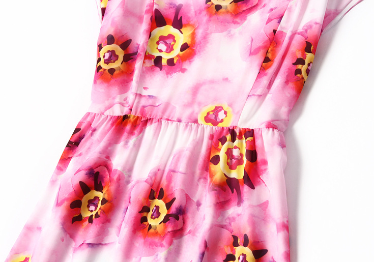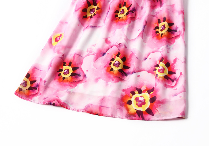 2015春夏新款欧美风印花高档桑蚕丝七分袖A字裙真丝连衣裙