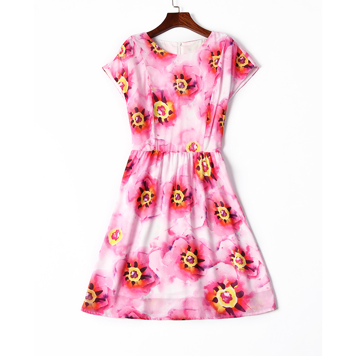 2015夏季新款 圆领印花收腰修身a字裙品质连衣裙