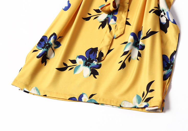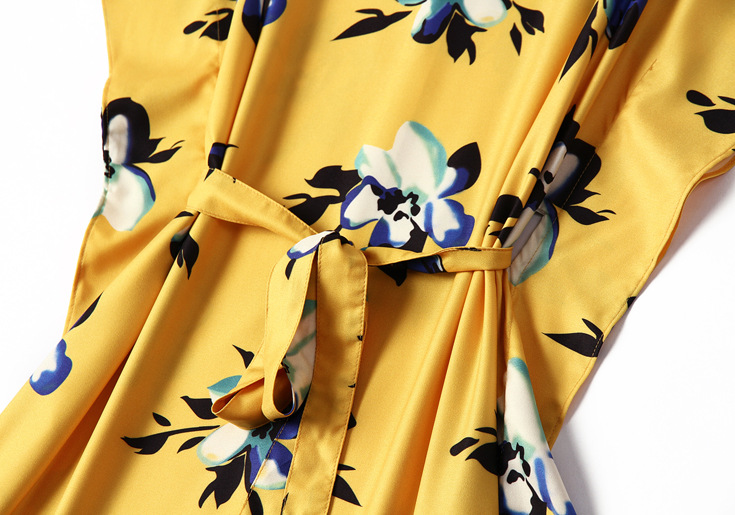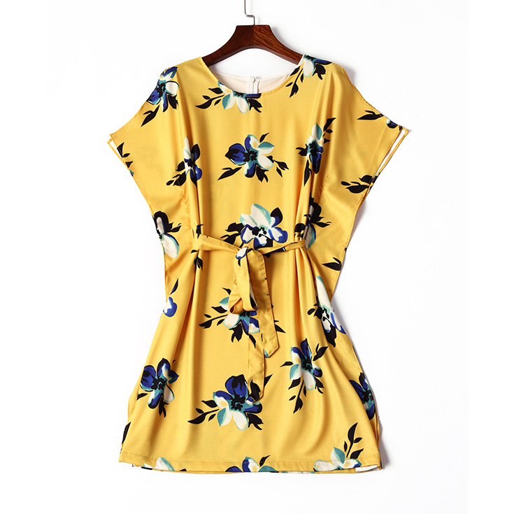 2015夏季新款 时尚圆领蝙蝠袖印花系带宽松连衣裙