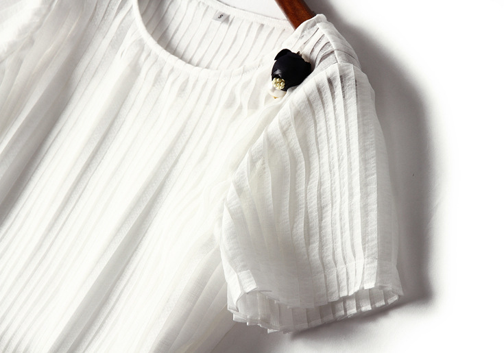 2015夏 圆领水溶绣花钉钻纯色上衣+弹力修身印花蓬蓬半裙套装