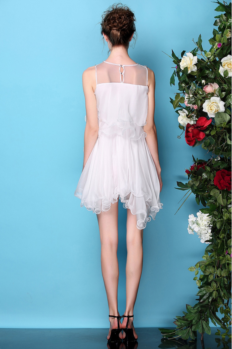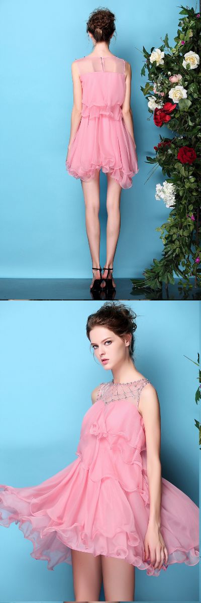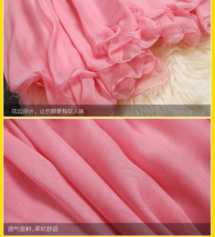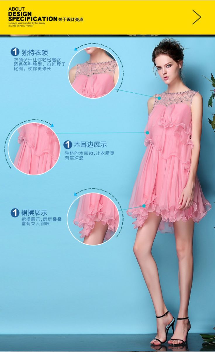 > 2015新款女装圆领无袖裙高腰百褶裙钉珠欧洲站雪纺连衣裙