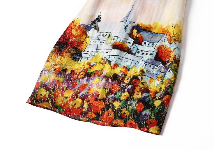 2015春夏新款欧美风印花高档桑蚕丝七分袖A字裙真丝连衣裙