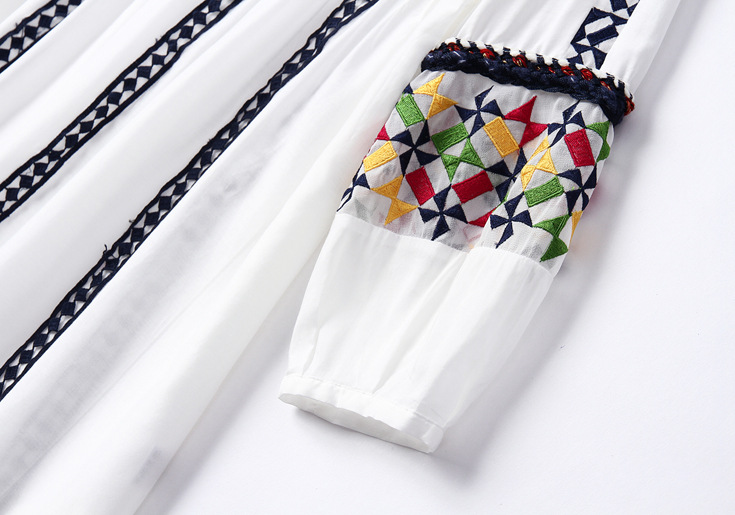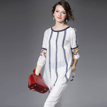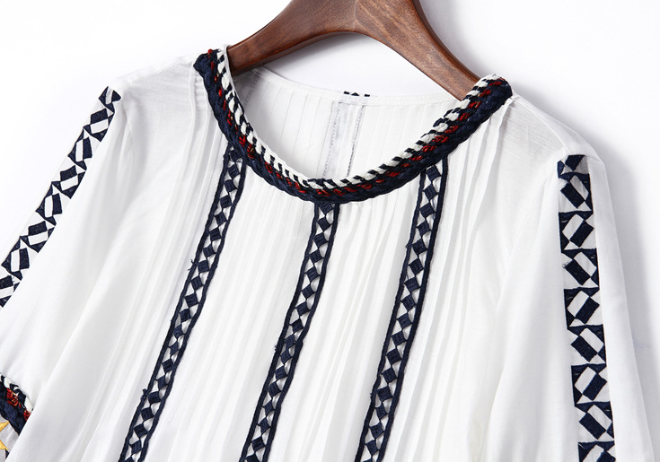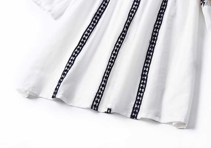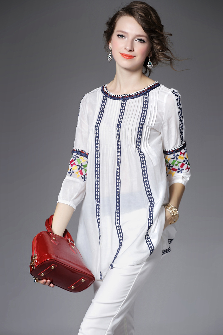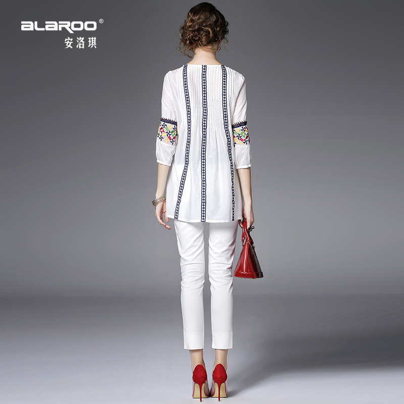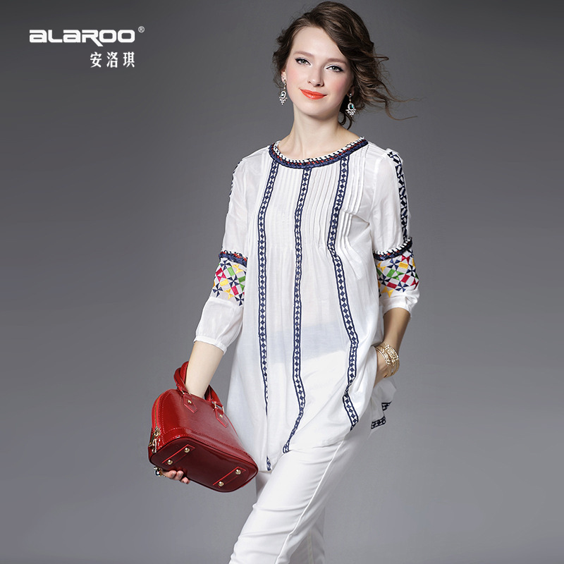 > 2015夏季女装新款 民族风织带刺绣拼接宽松上衣七分袖精品