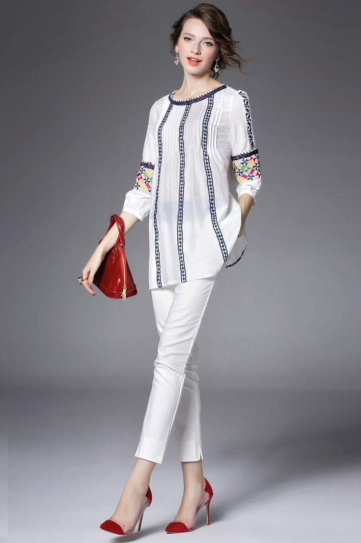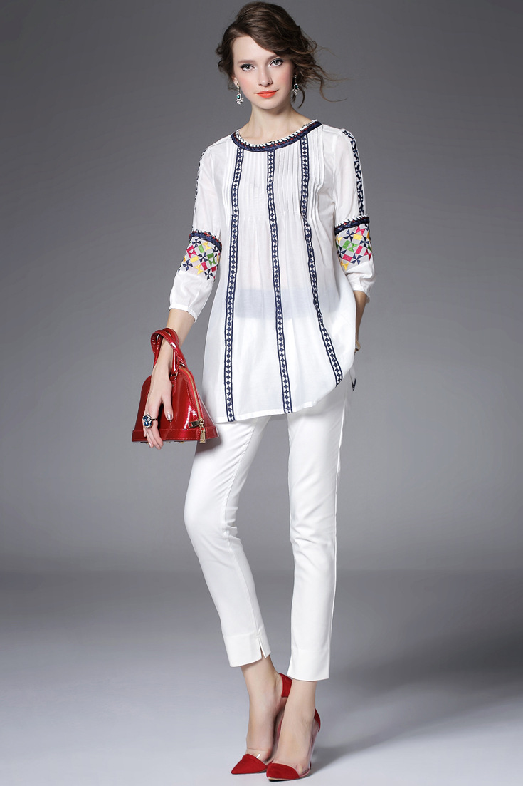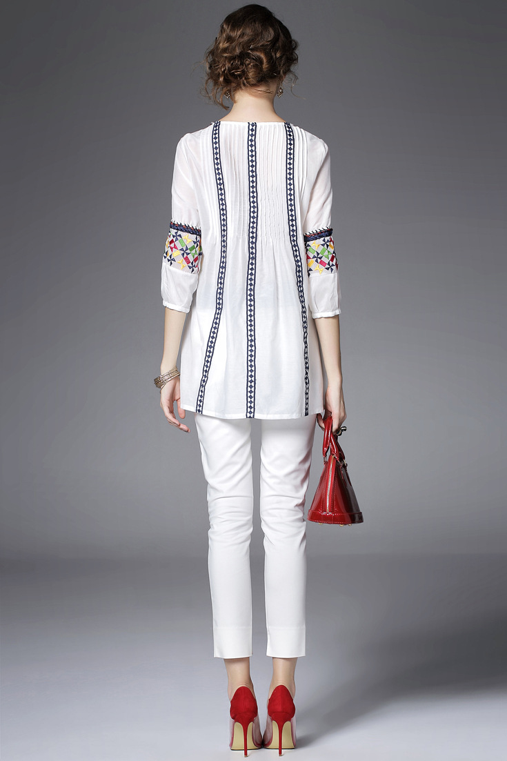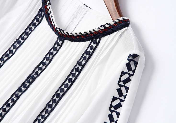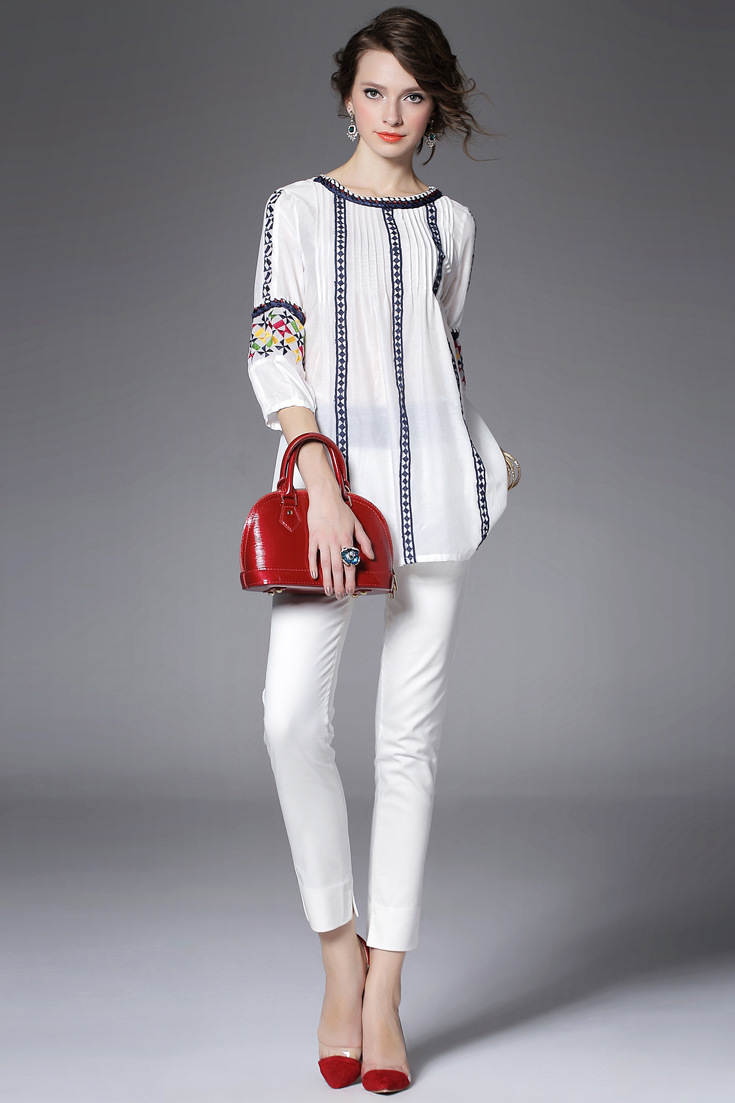 > 2015夏季女装新款 民族风织带刺绣拼接宽松上衣七分袖精品