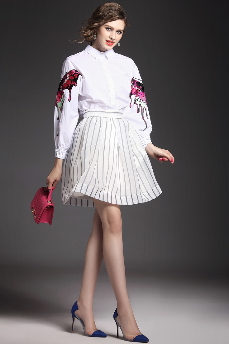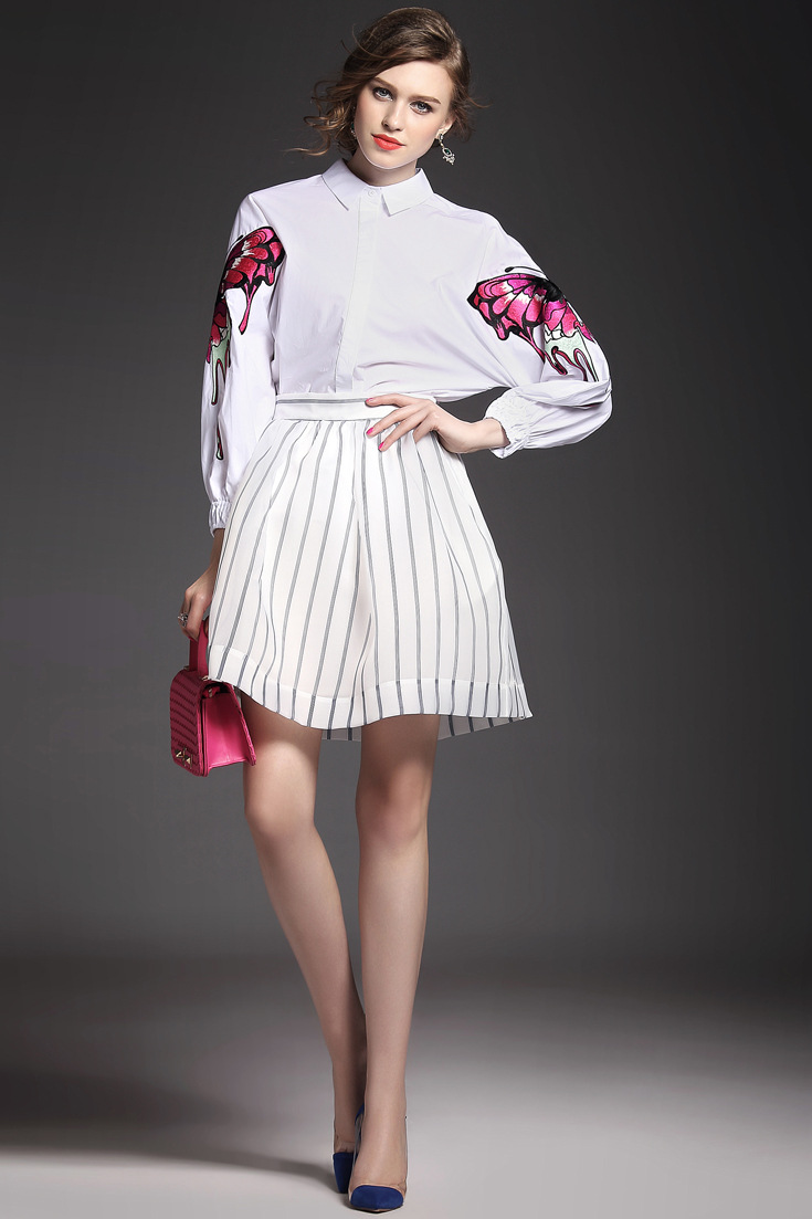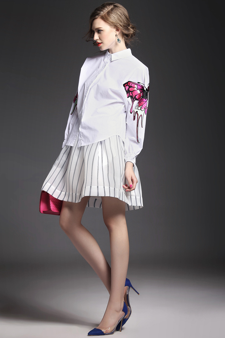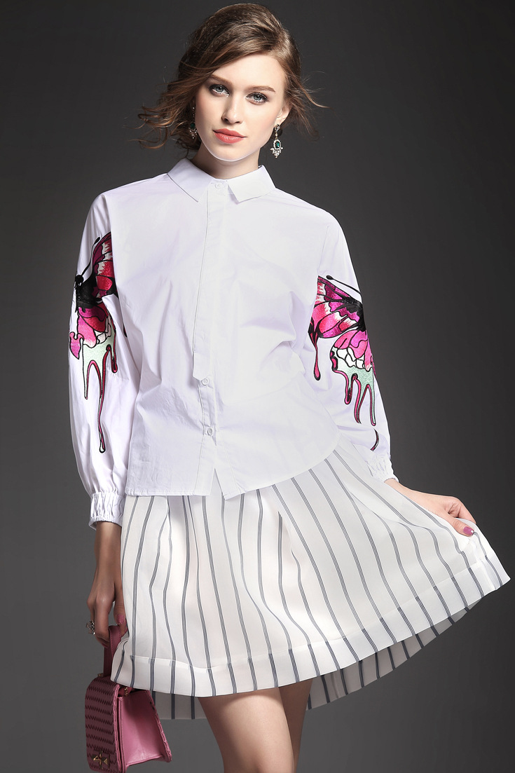 > 2015夏季新款 欧美翻领蝙蝠袖重工蝴蝶刺绣单排扣宽松衬衣女衬衫