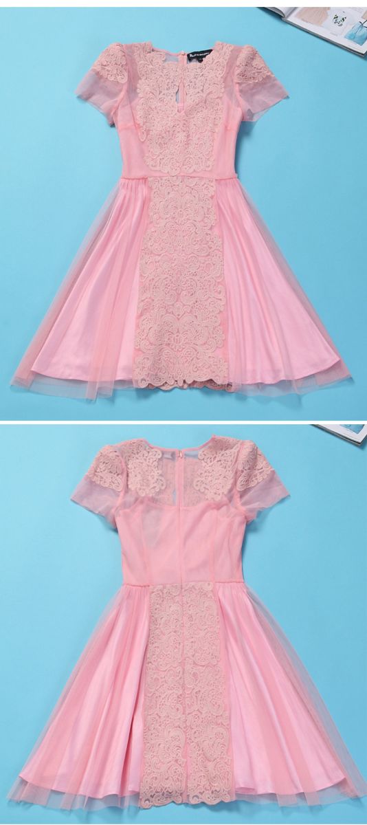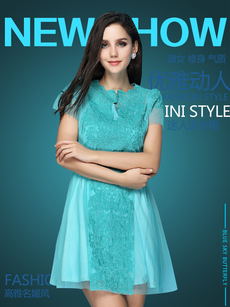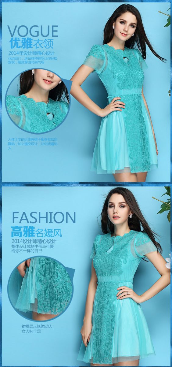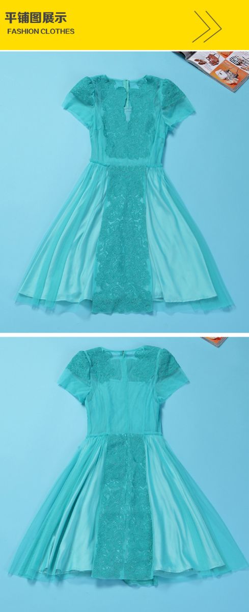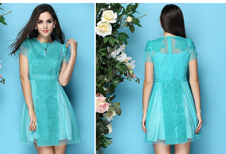 > 2015新款夏季精致女装 绣花女连衣裙短袖 两件套网纱大摆裙