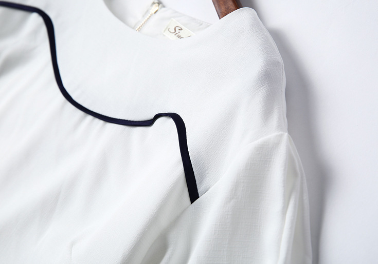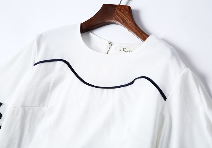 2015夏 圆领水溶绣花钉钻纯色上衣+弹力修身印花蓬蓬半裙套装