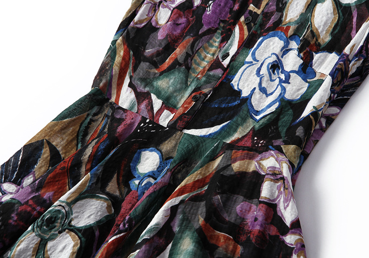2015春夏季新款欧美风印花真丝连衣裙七分袖衬衣领时尚A字裙