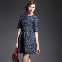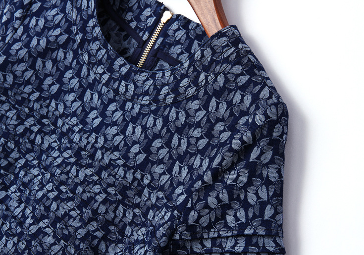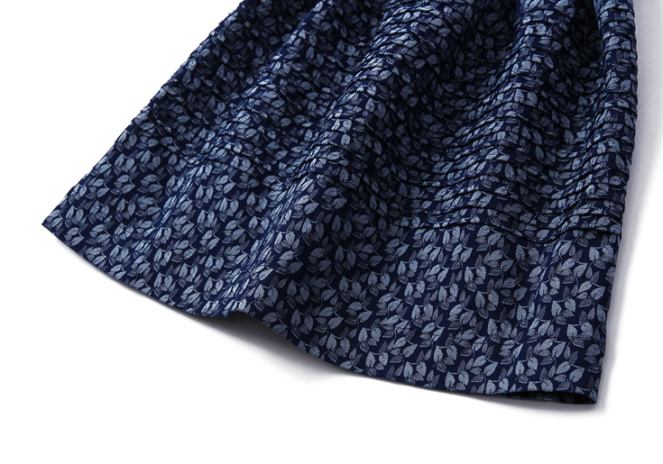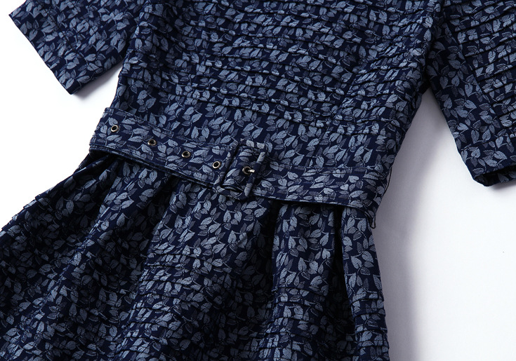 2015夏季女装新款 欧美大牌重工压褶树叶提花拼接束腰修身a字裙