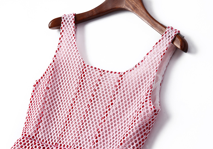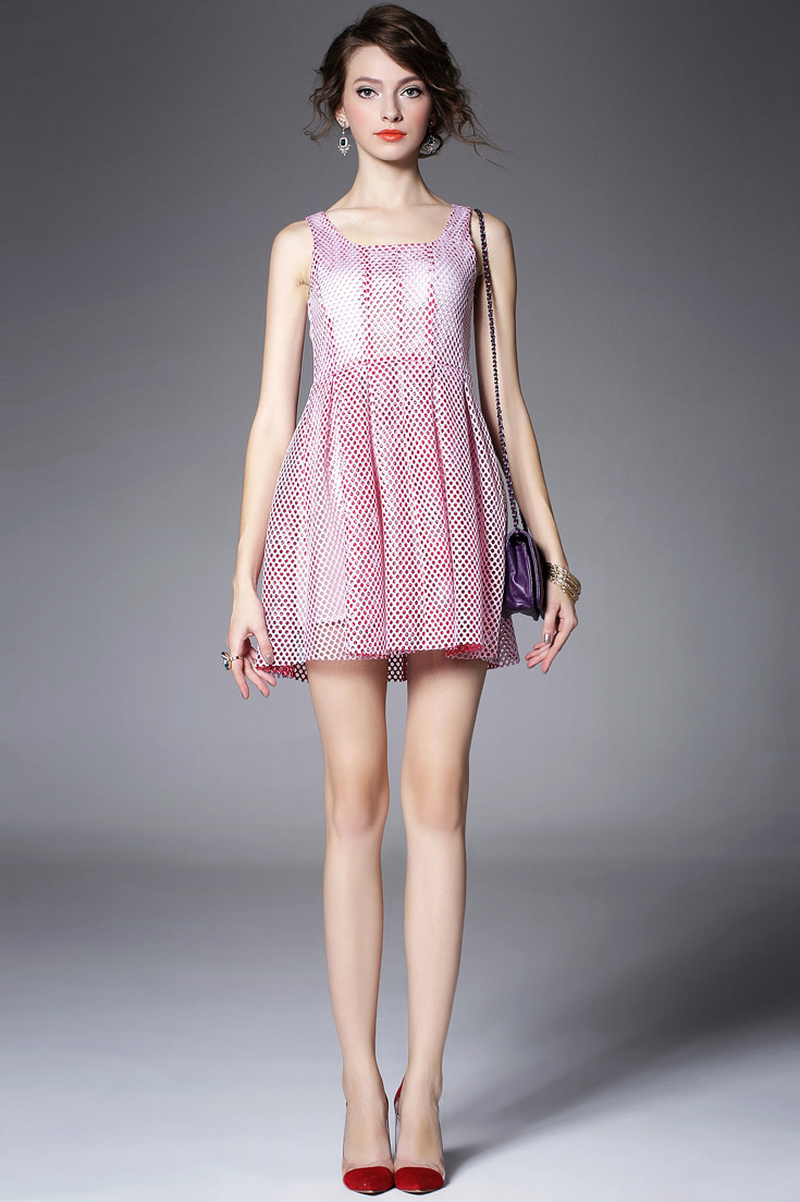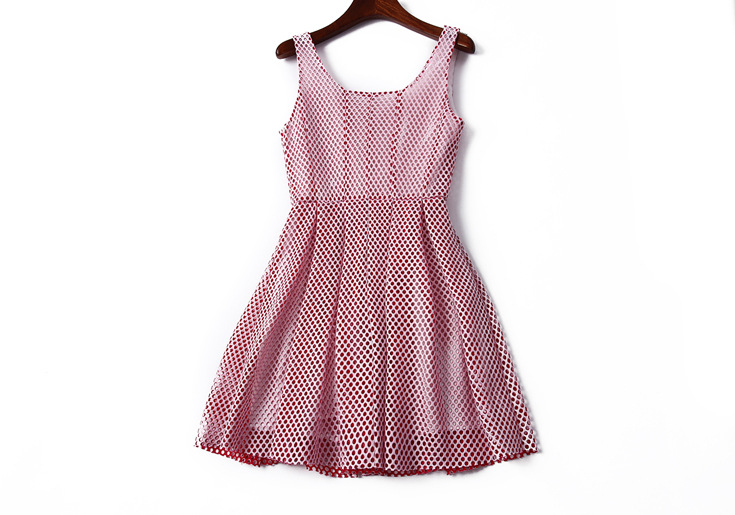 2015欧洲站夏季女装 圆领无袖露背纯色修身蓬蓬裙气质淑女网纱裙