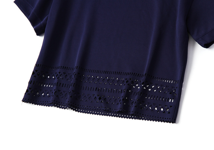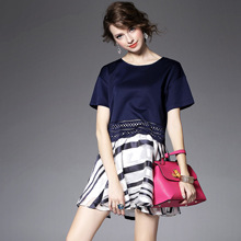 2015夏季女装 欧美大牌袖口蕾丝拼贴短袖T恤+印花半裙两件套
