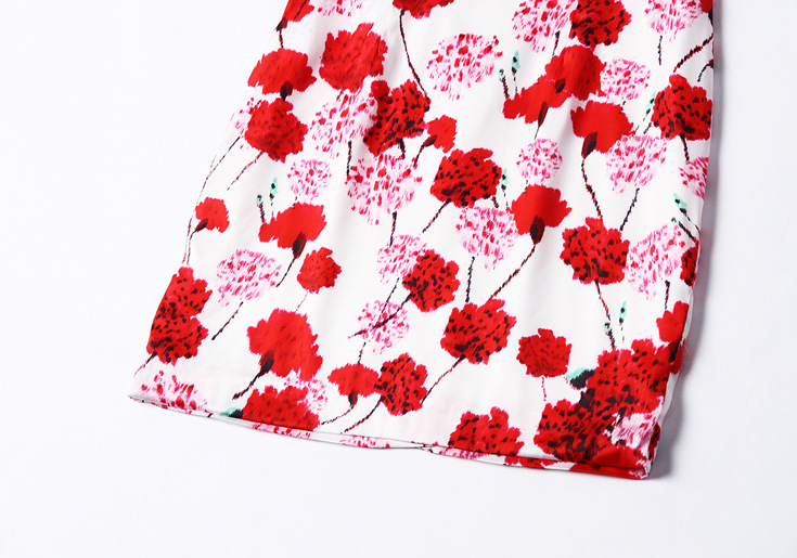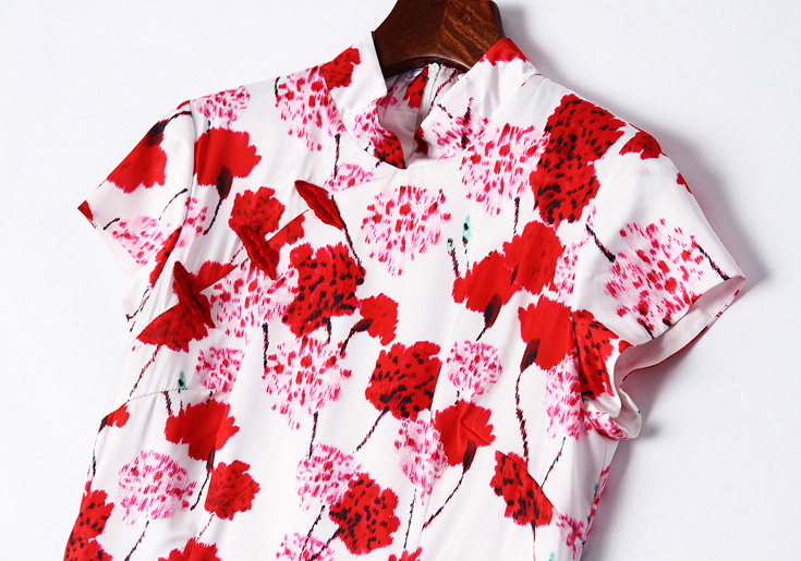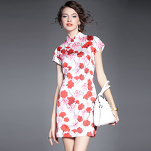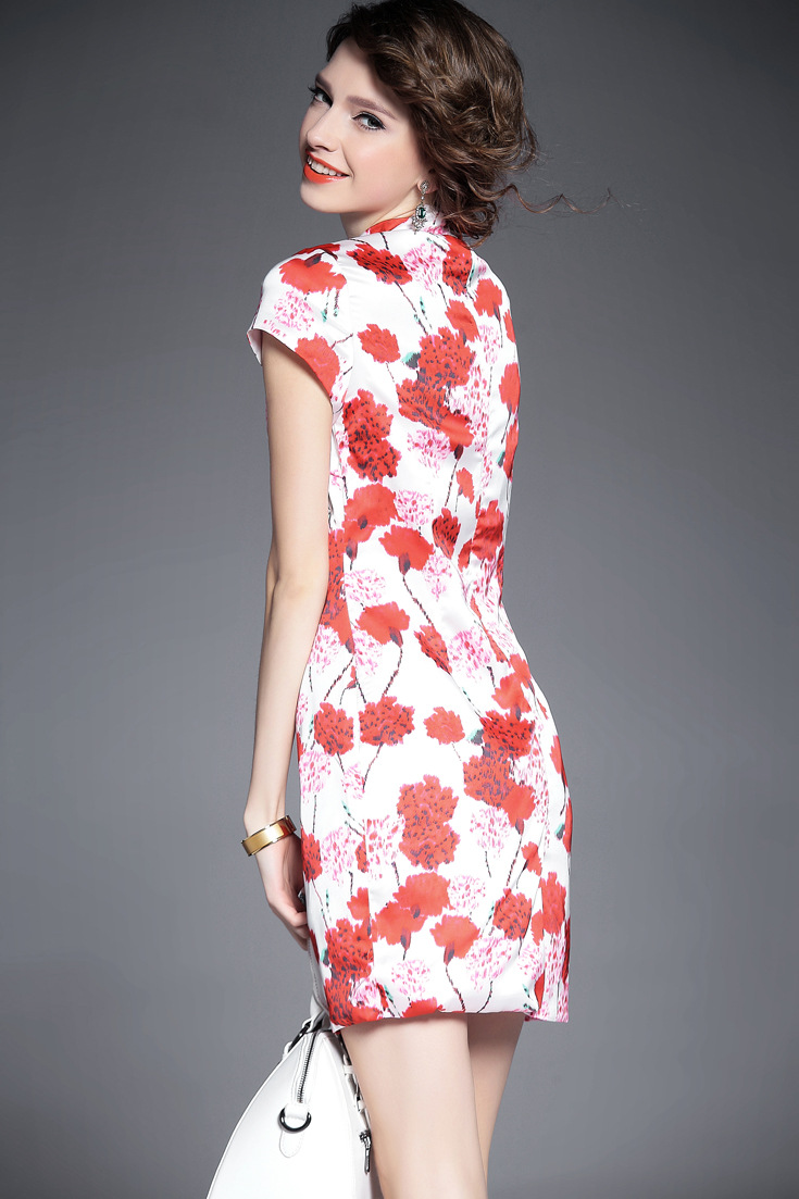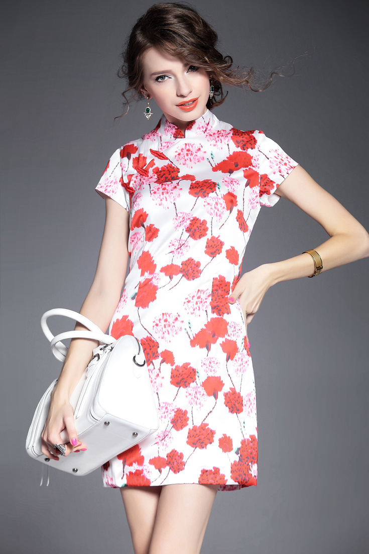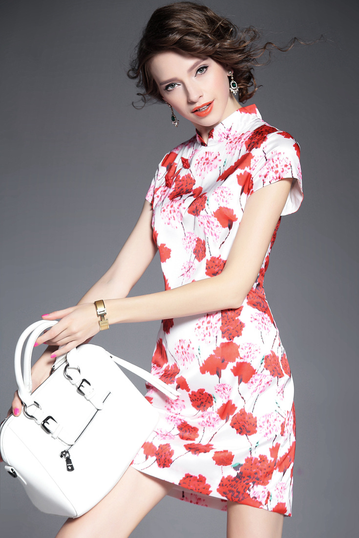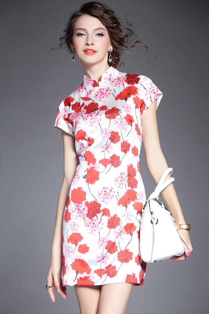 2015夏季新款女装 复古中国风气质立领包肩袖印花修身包臀旗袍