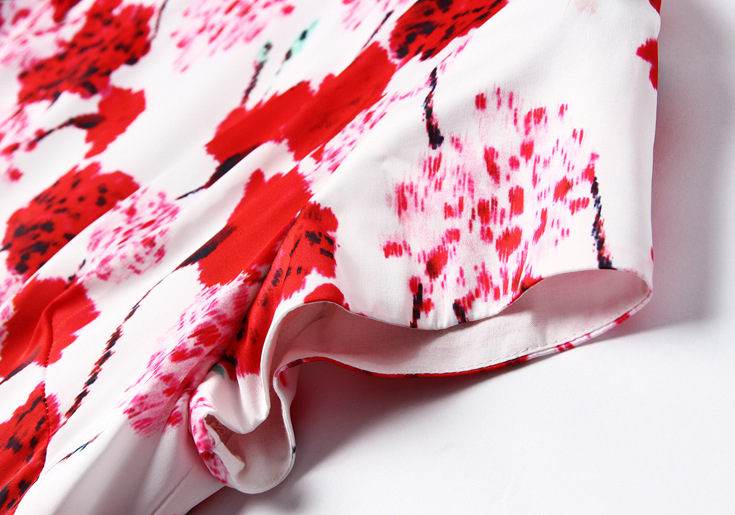 2015春夏新款欧美风印花高档桑蚕丝七分袖A字裙真丝连衣裙