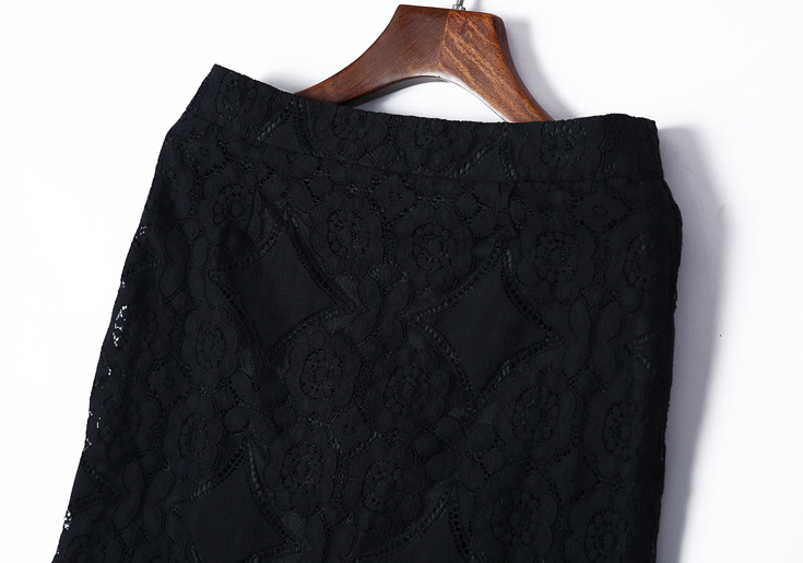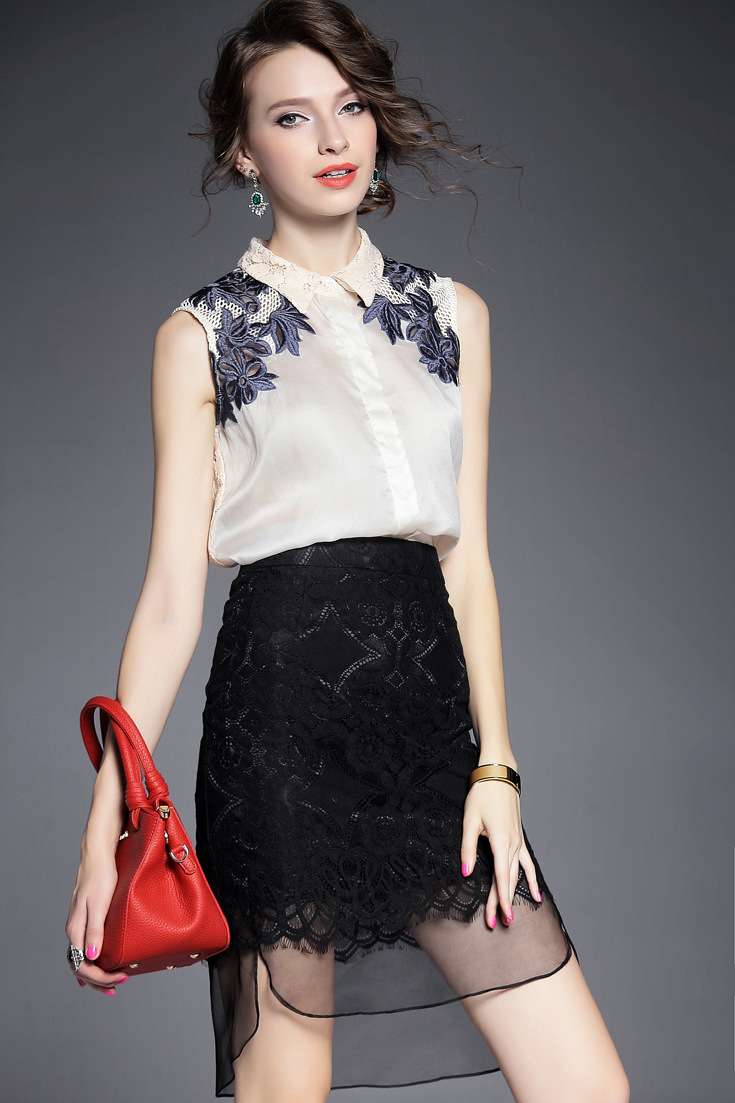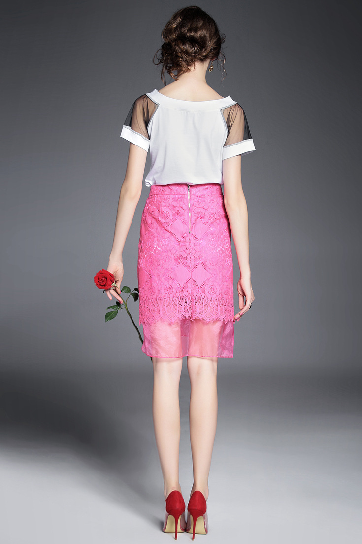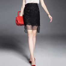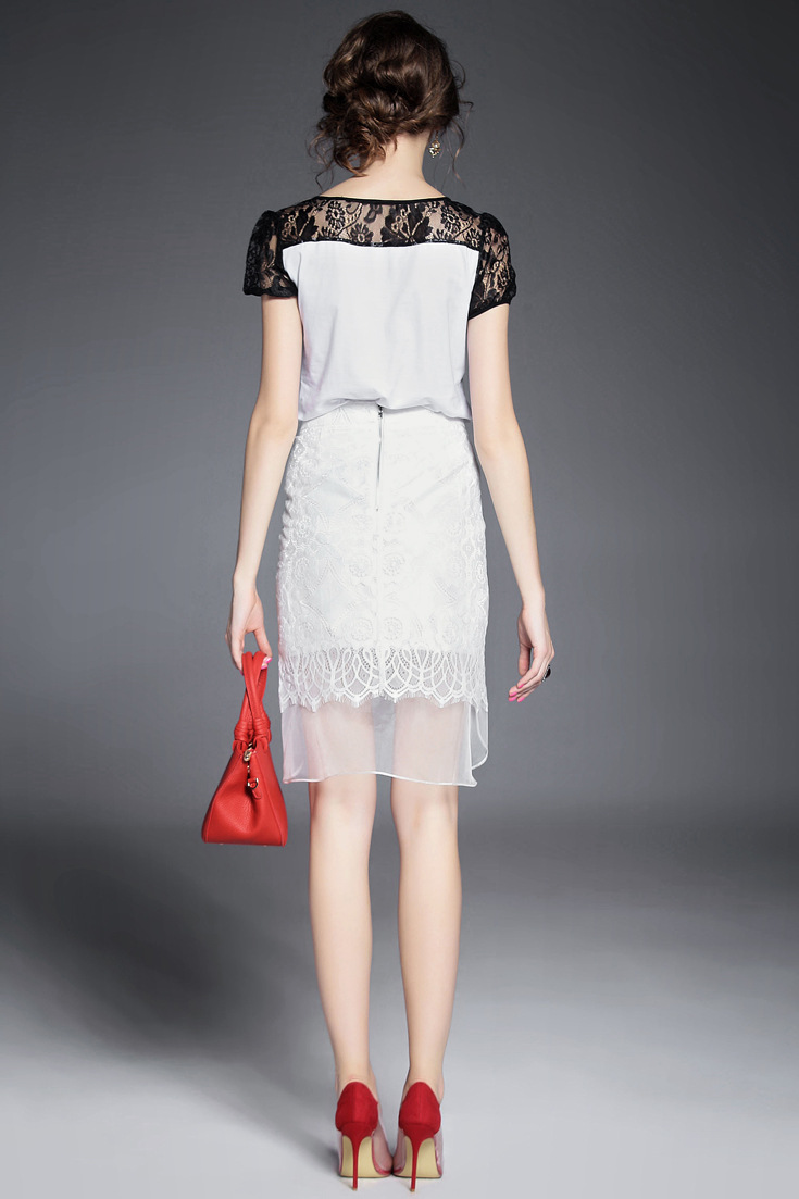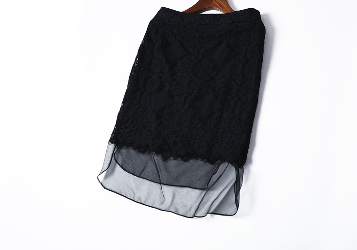 > 2015夏 纯色蕾丝真丝欧根纱拼接修身包臀不规则半身裙
