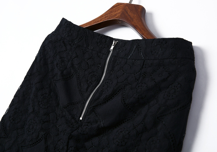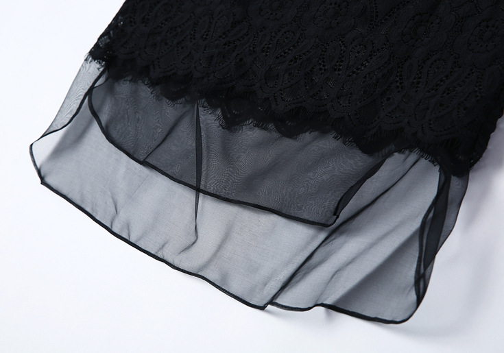 2015夏 纯色蕾丝真丝欧根纱拼接修身包臀不规则半身裙