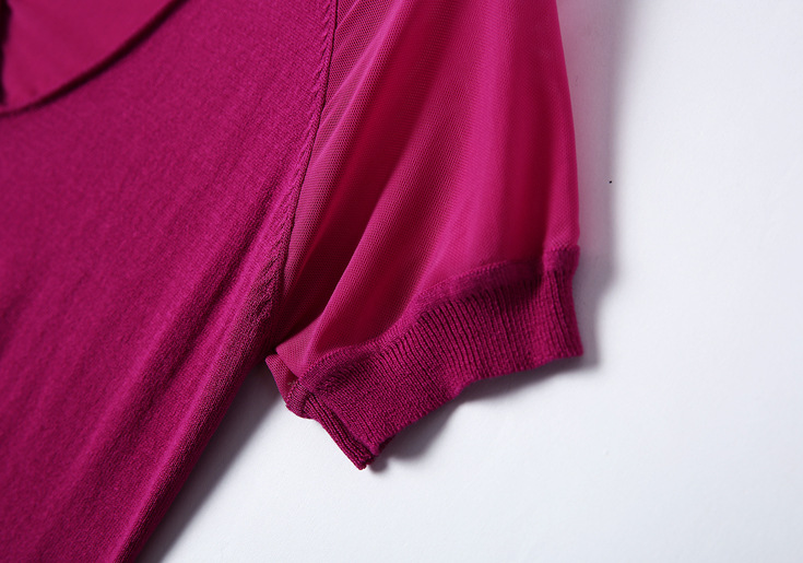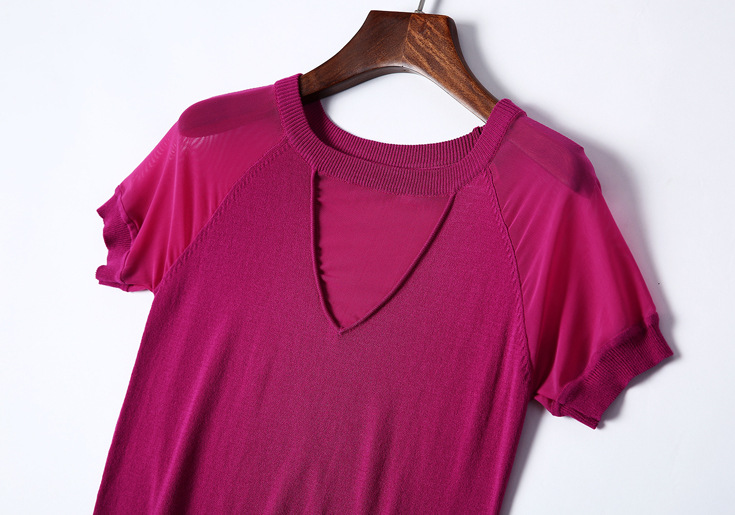 2014夏装新款 欧美大牌重工绣花网纱拼接宽松上衣纯色短袖T恤女