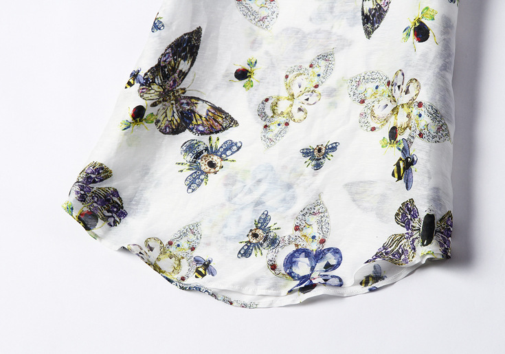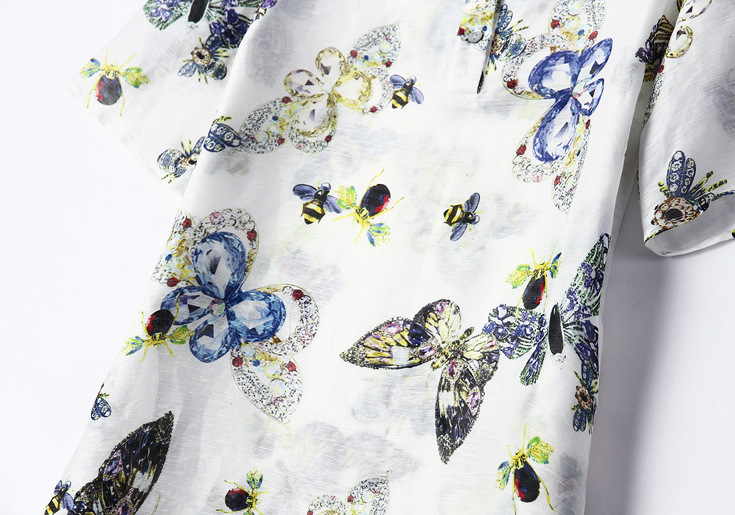 2015夏季新款 时尚圆领单排扣套头中袖亚麻印花连衣裙