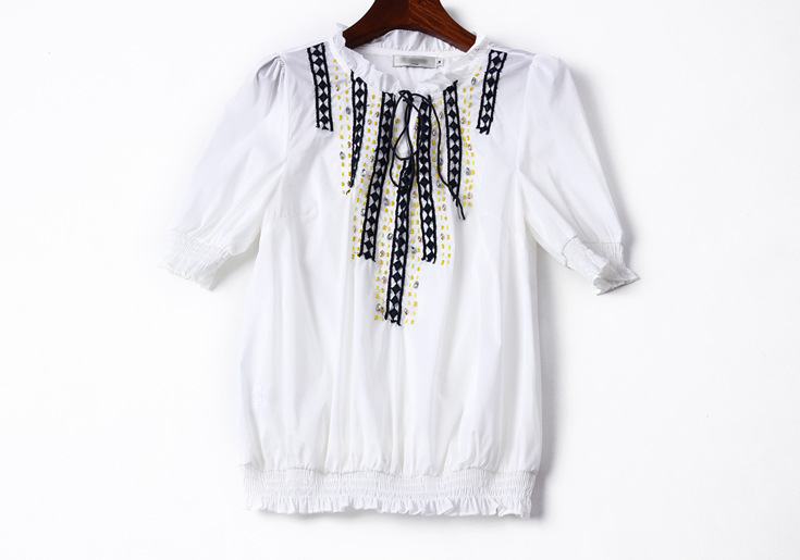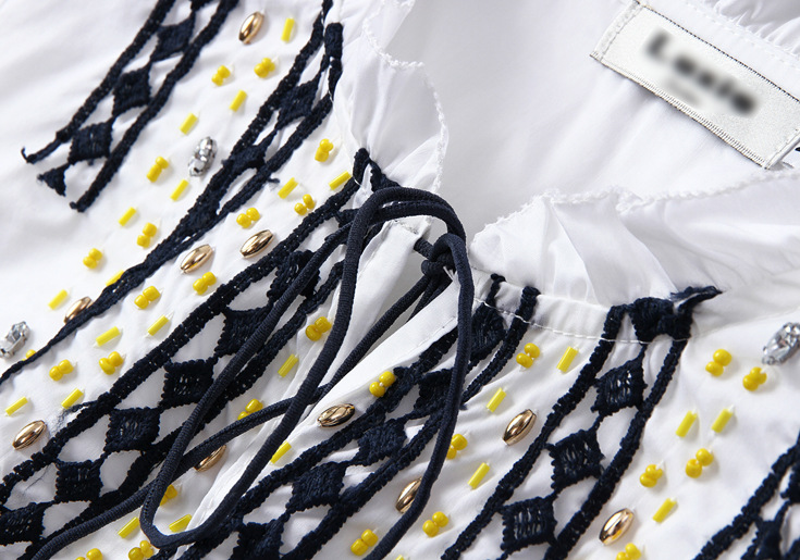 2015夏 圆领水溶绣花钉钻纯色上衣+弹力修身印花蓬蓬半裙套装