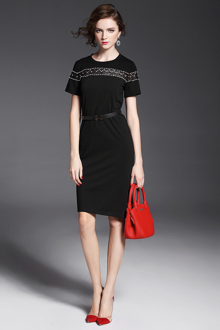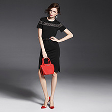 > 2015夏季女装 欧美大牌绣花镂空钉钻弹力修身不规则包臀一步裙