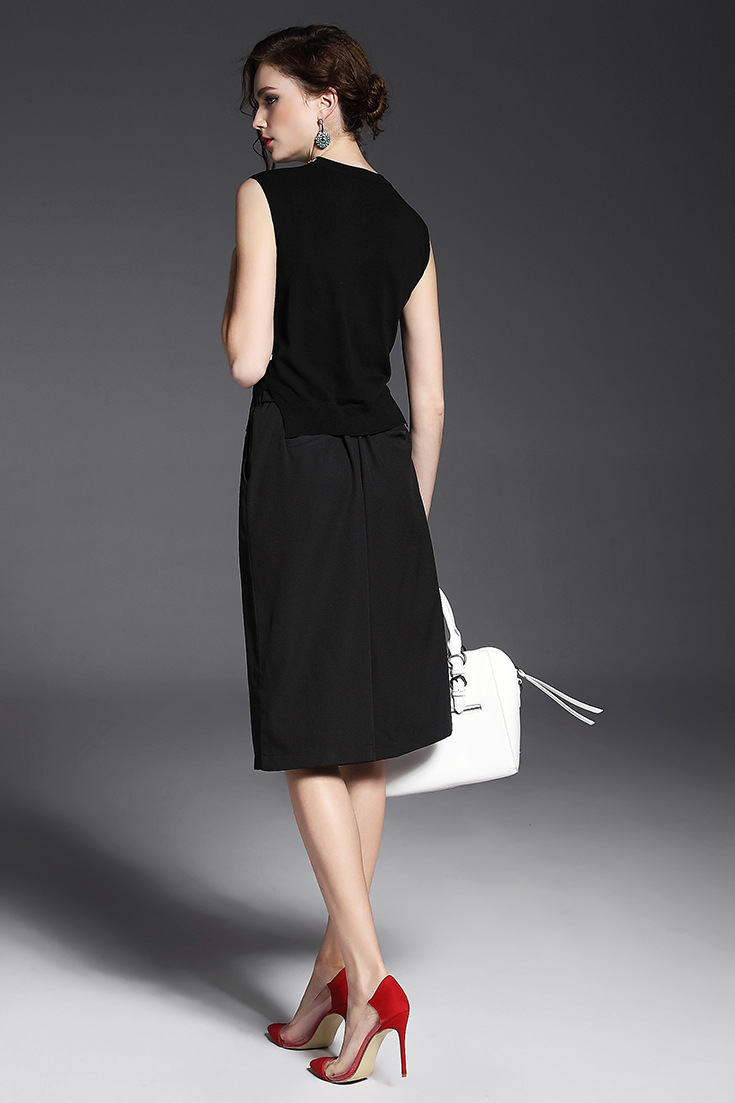 2015夏 圆领水溶绣花钉钻纯色上衣+弹力修身印花蓬蓬半裙套装