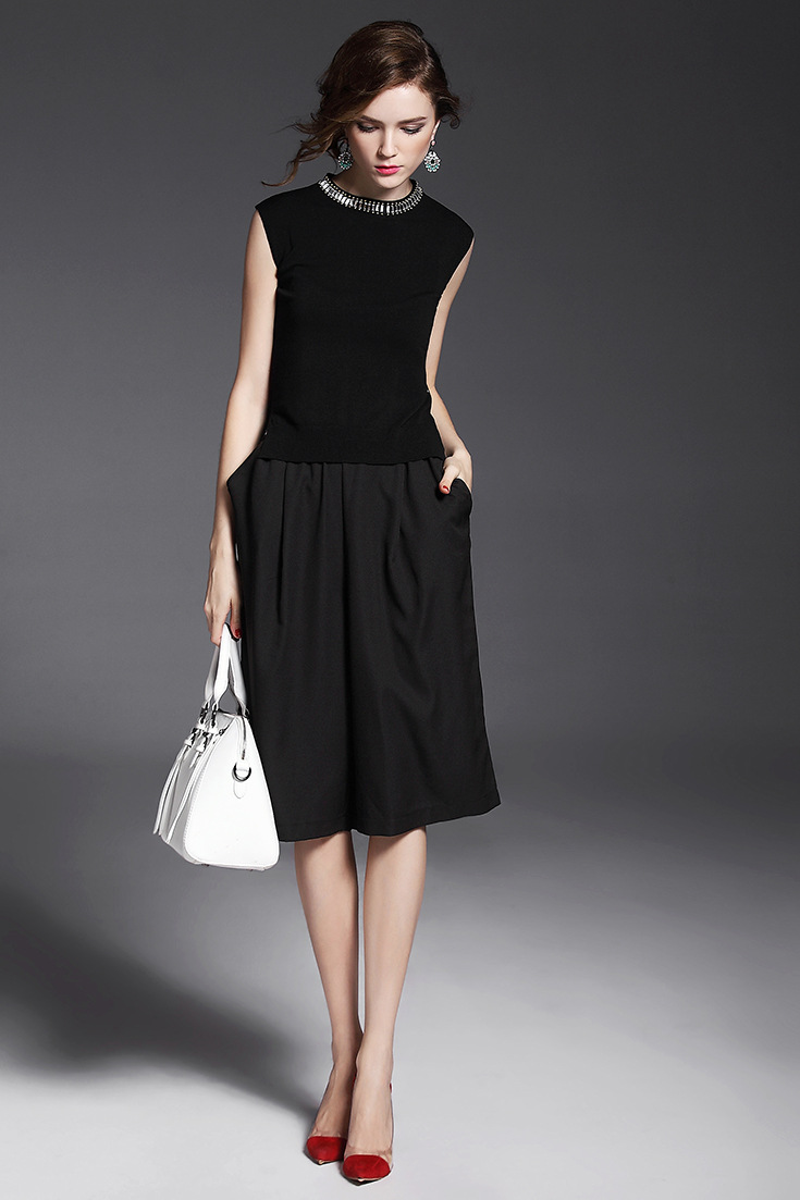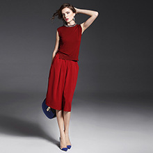 2015夏季女装新款 欧美时尚纯色压褶上衣+阔腿短裤三件套送吊带
